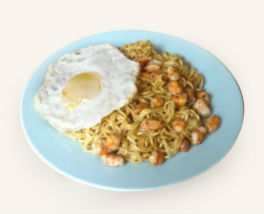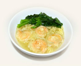 Chicken Flavour Noodles with Prawn Wantons and Kai Lan